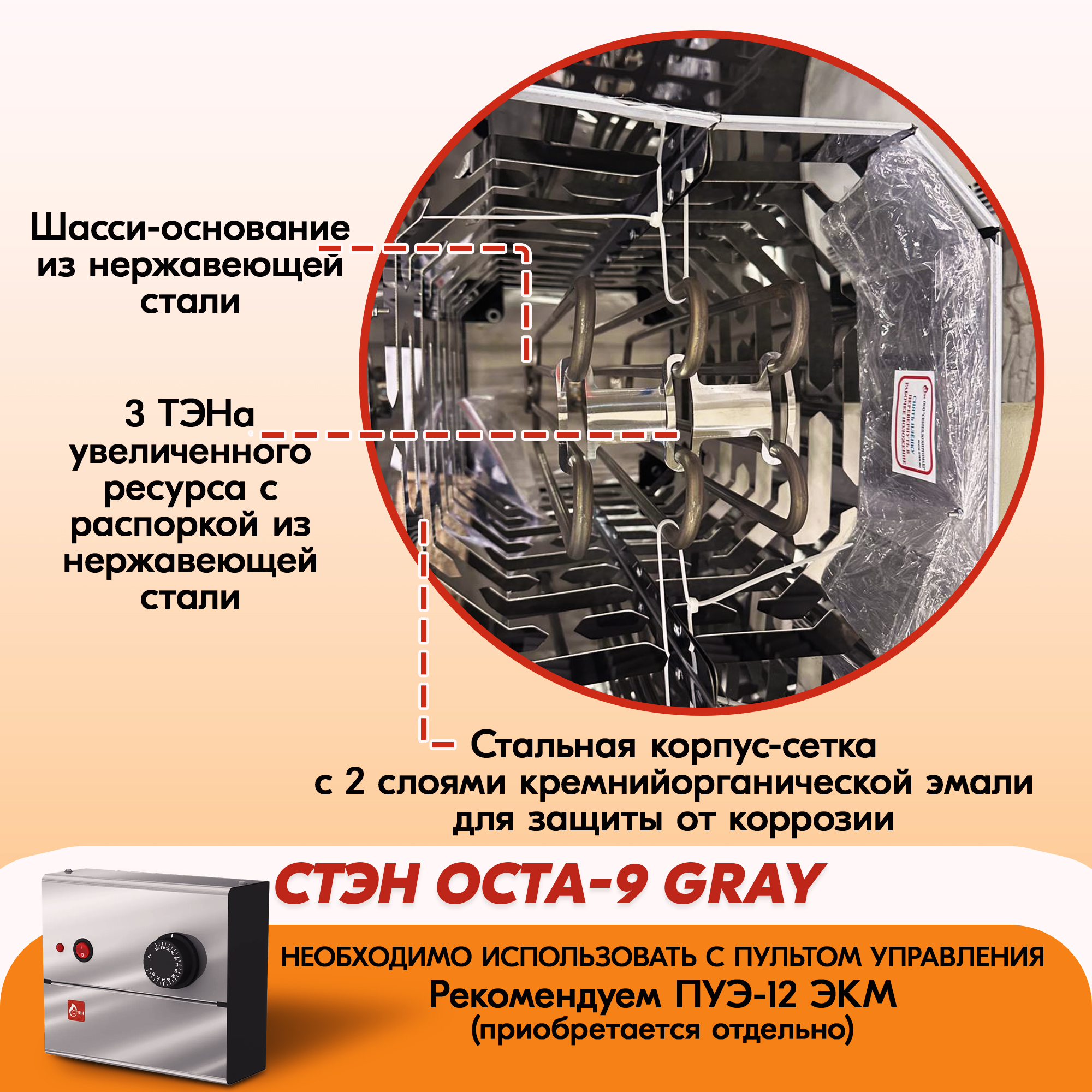 Электрическая каменка СТЭН ЭКМ 9 Octa gray в Ростове-на-Дону | Доставка по России