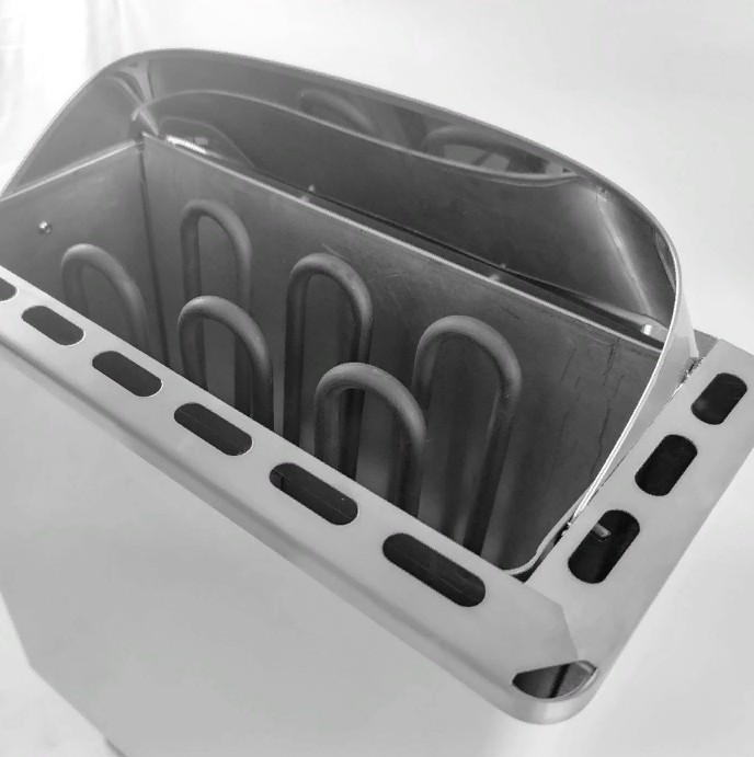 Корпус Делсот ЭКМ 1- 3 выполнен из особопрочной стали, устойчивой к деформации и коррозии. Из надежной нержавеющей стали изготовлены ТЭНы. Все эти качества говорят о том, что эта каменка прослужит вам не один год!