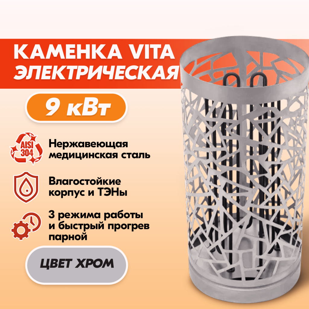 Электрокаменка VITA 9 кВт нерж. в Ростове-на-Дону | Доставка по России