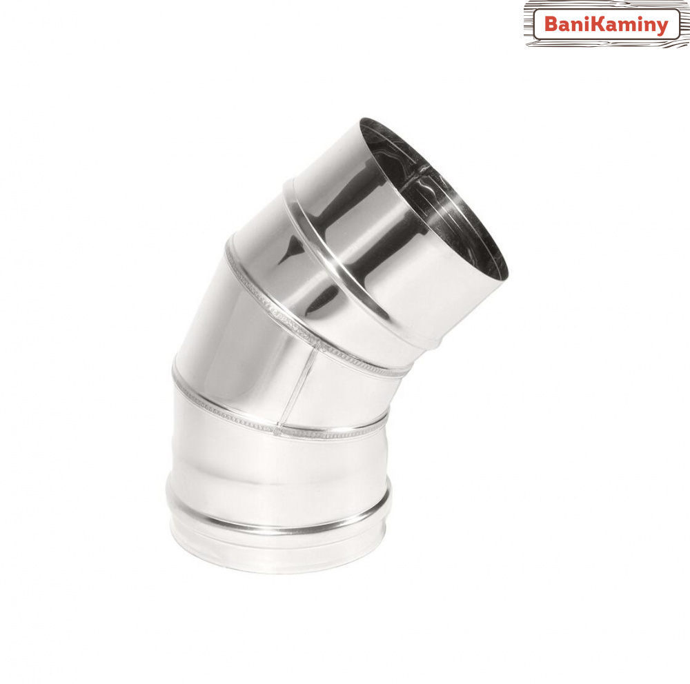 Отвод на 45 градусов позволяет сместить ось дымохода по горизонтали на соответствующий угол. Такое смещение может потребоваться при необходимости изменить направление трубы или для обхода препятствий. Благодаря возможности, которую предоставляет этот элемент, монтаж системы дымоотведения можно выполнять в любых удобных вариантах.