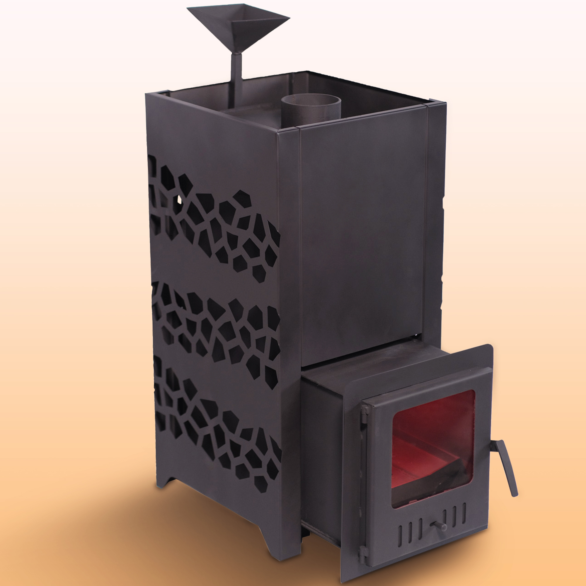 Эффективное расположение открытой каменки прямо над верхней частью топочной камеры позволяет быстро и эффективно нагревать камни, что обеспечивает нужную температуру и пар в парной.