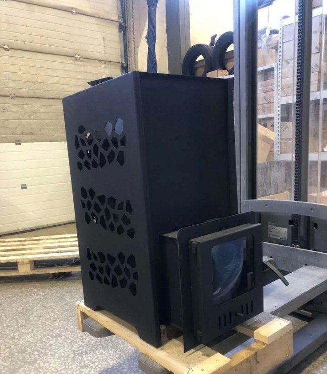 Отдельно стоит отметить и дизайн кожуха банной печи, выполненный в виде рядов мозаичной перфорации, добавляет печи неповторимую эстетику и стиль.