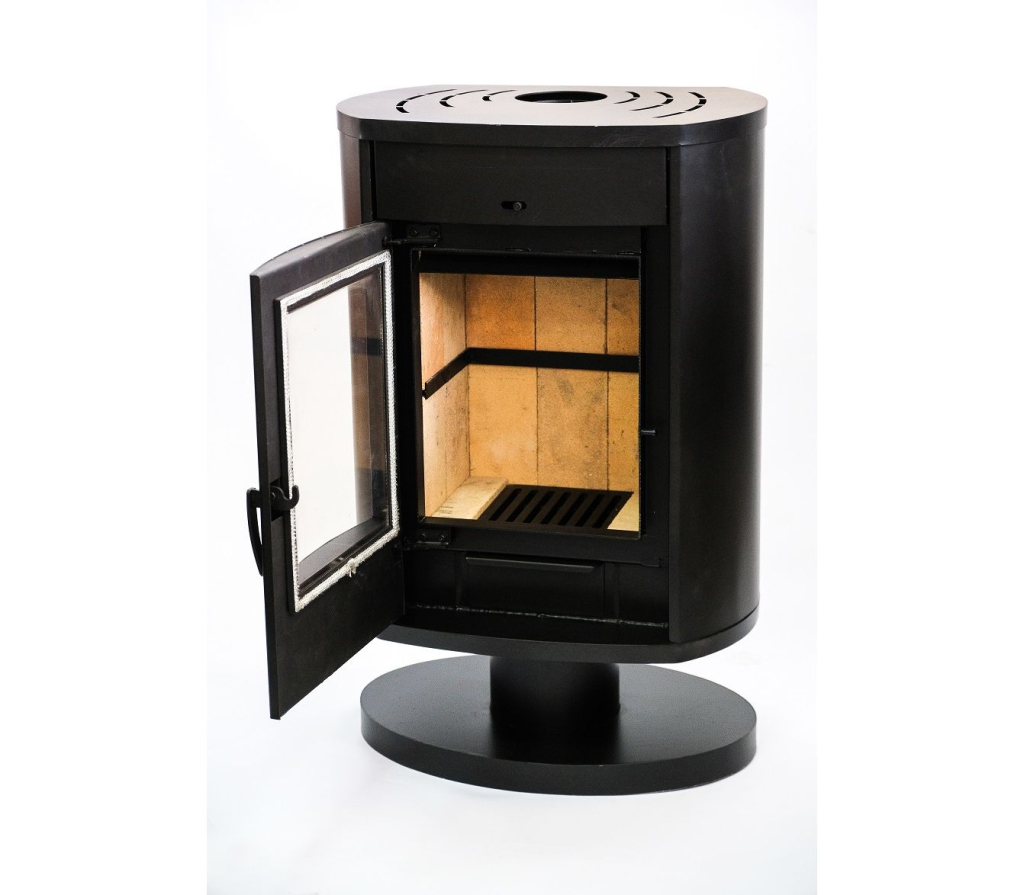 Большое жаропрочное стекло изготовлено по системе “чистое стекло”. Это дает возможность контролировать процесс горения без открывания топочной дверцы, а также наблюдать за живым огнем.