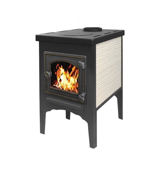 Верхнюю горизонтальную поверхность можно использовать для приготовления пищи. Печь укомплектована чугунным колосником и чугунной негерметичной дверцей Везувий ДТ-4. Печь облицована керамической плиткой для лучшего распределения тепла.