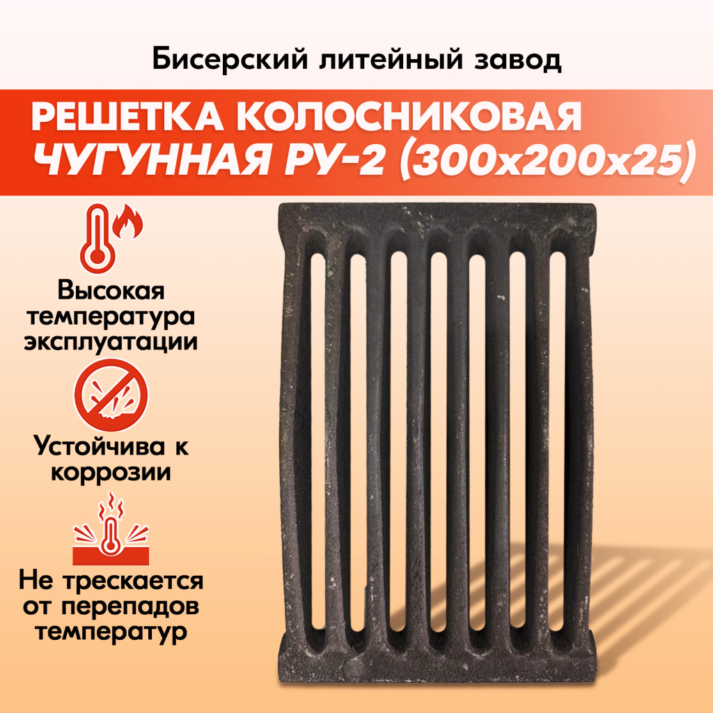 Обращаем внимание, что колосниковая решетка из чугуна РУ-7 — это 1/2 колосниковой решетки для угля РУ-2 и предназначена для укладки с решеткой РУ-2 в увеличенные по ширине топки печей размером 300х300 мм и больше.