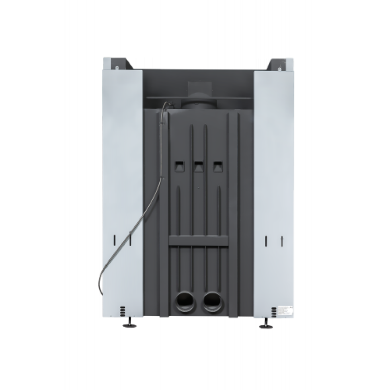 Встроенный кожух и патрубки для системы распределения теплого воздуха в смежные помещения позволяют увеличить площадь обогреваемых помещений.