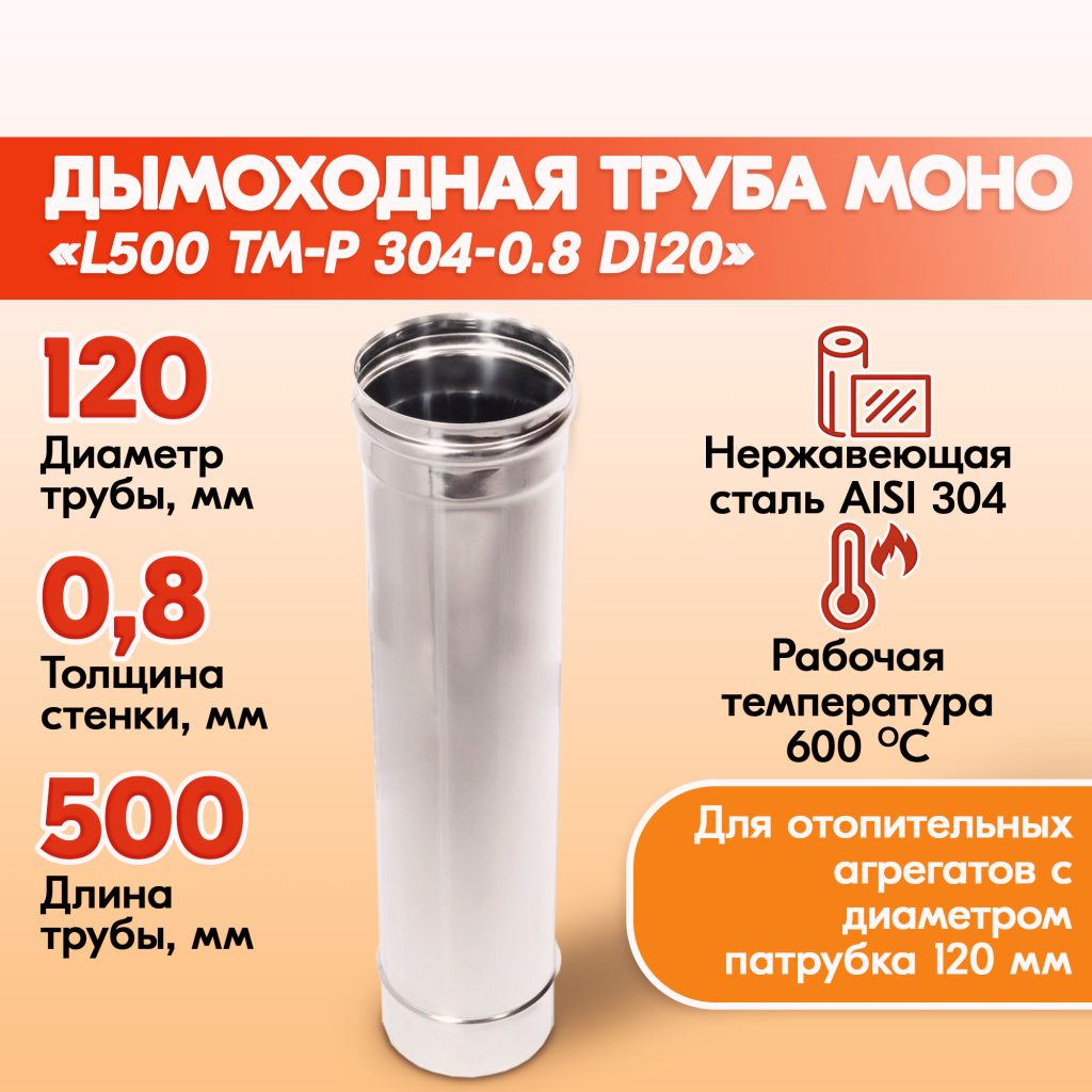 Труба L500 ТМ-Р 304-0.8 D120