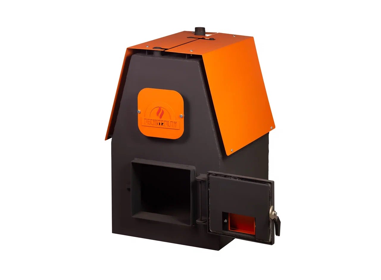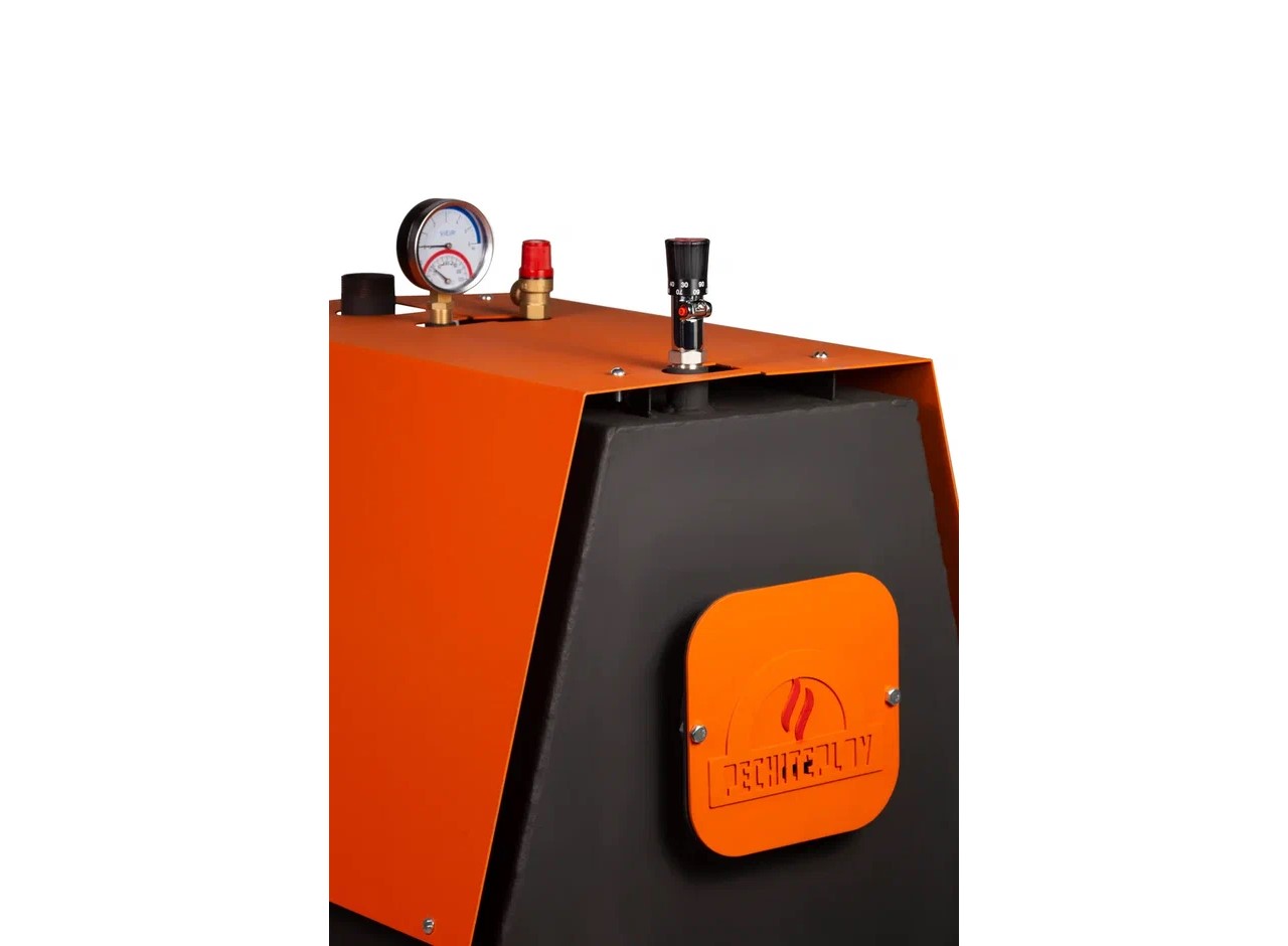 Котел ПЕЧИТЕПЛОВ предназначен для работы в системах водяного отопления малоэтажных зданий при рабочем давлении до 2 атмосфер и максимальной температуре нагрева воды 95°С. Агрегат представляет собой цельносварную конструкцию из стали 09Г2С толщиной не менее 4 мм, с водонаполненными перевалочными листами.