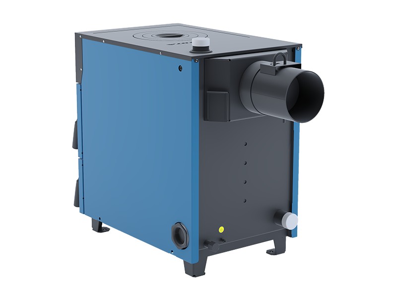 высокая степень теплоизоляции и газоплотности, теплообменник комбинированного типа. Корпус котла под декоративной обшивкой изолирован базальтовым картоном. На обшивке дверок располагаются вентиляционные отверстия для охлаждения наружной поверхности котла.  Дверца зольника  оборудована воздушной заслонкой, снабженной винтом с ручкой, которым  можно регулировать приток первичного воздуха в камеру сгорания;