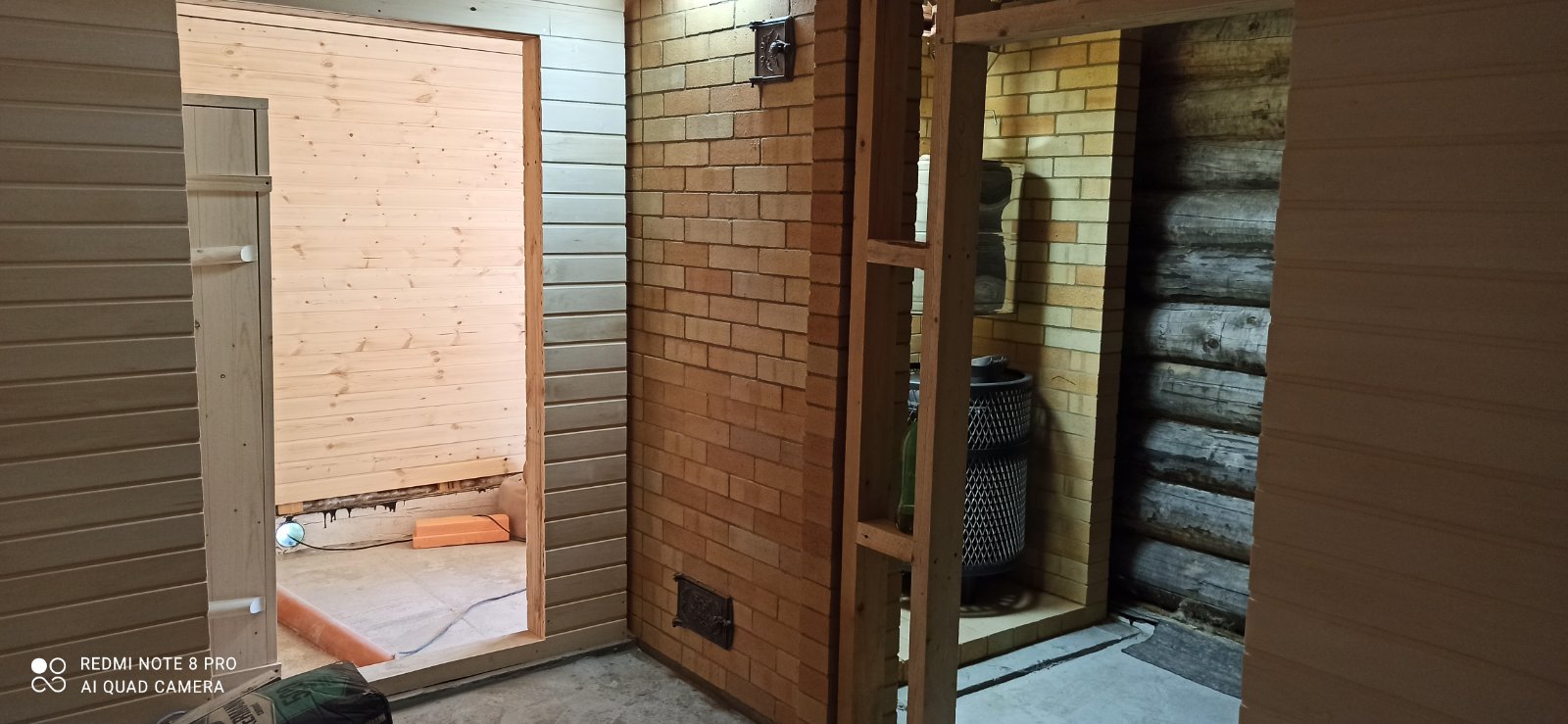 Монтаж печи Атмосфера, установка дымохода, кладка портала с конвекционными дверками.